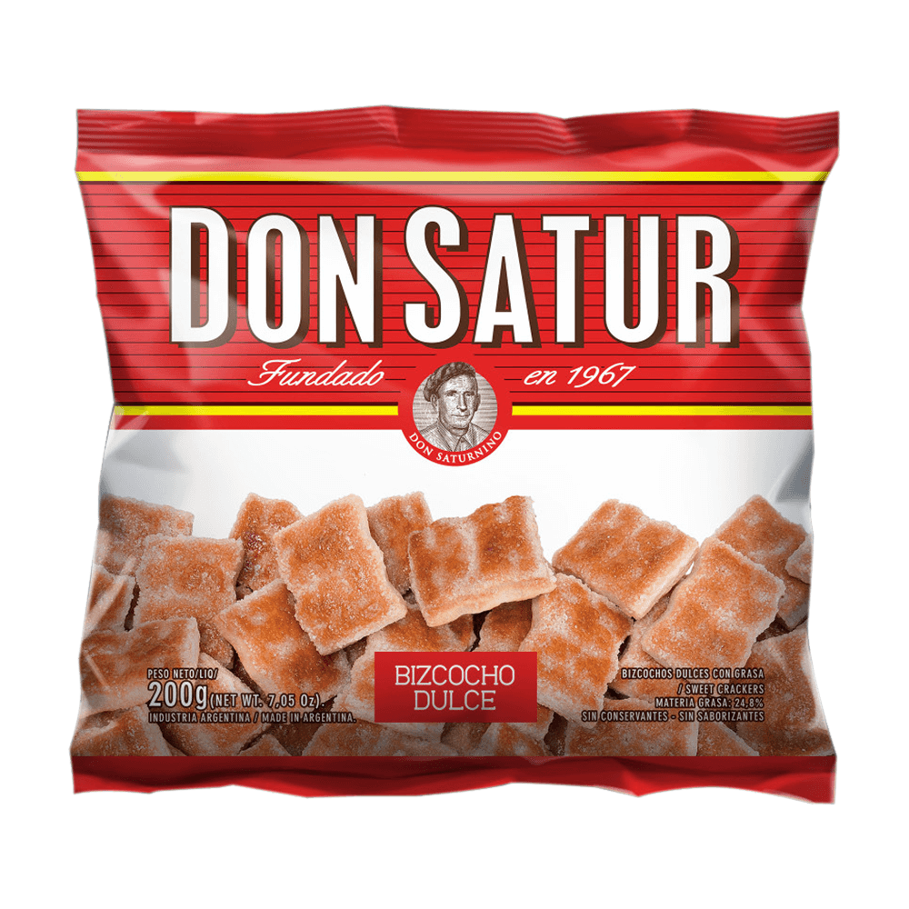 Los Bizcochos Dulces son las clásicas y dulces galletas Don Satur que tradicionalmente se comen mientras se disfruta de un Mate o con cualquier bebida caliente de su elección. ¡Cúbralos con dulce de leche, mermelada, chocolate para untar o mantequilla de maní y disfrute!