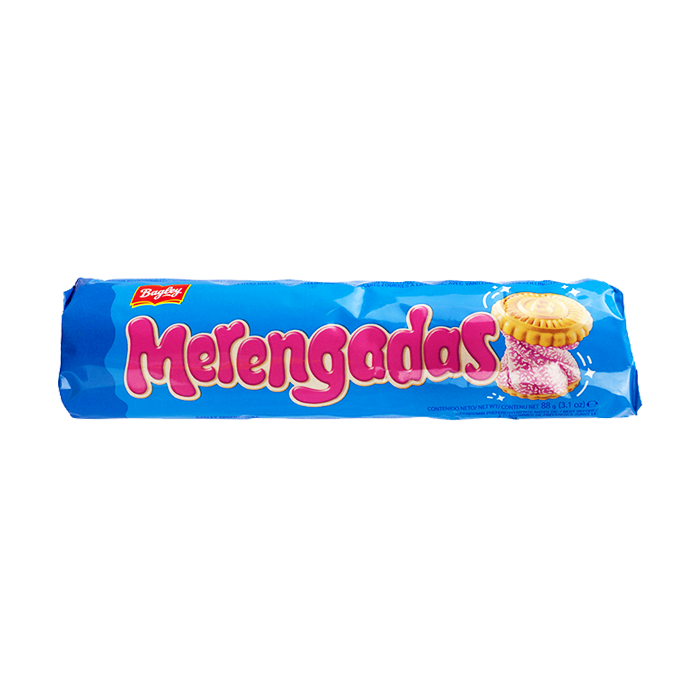 Las Merengadas son galletas argentinas de vainilla rellenas de crema de frutilla. ¡Las Merengadas acompañan a los niños argentinos desde hace generaciones! ¡Dulce, crujiente y delicioso!